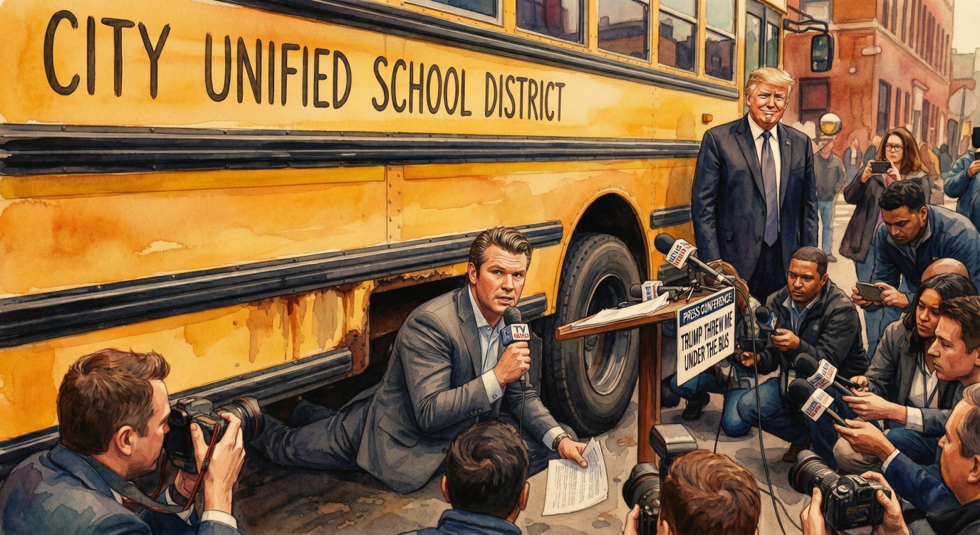 Hegseth about to give his next briefing from under the bus.